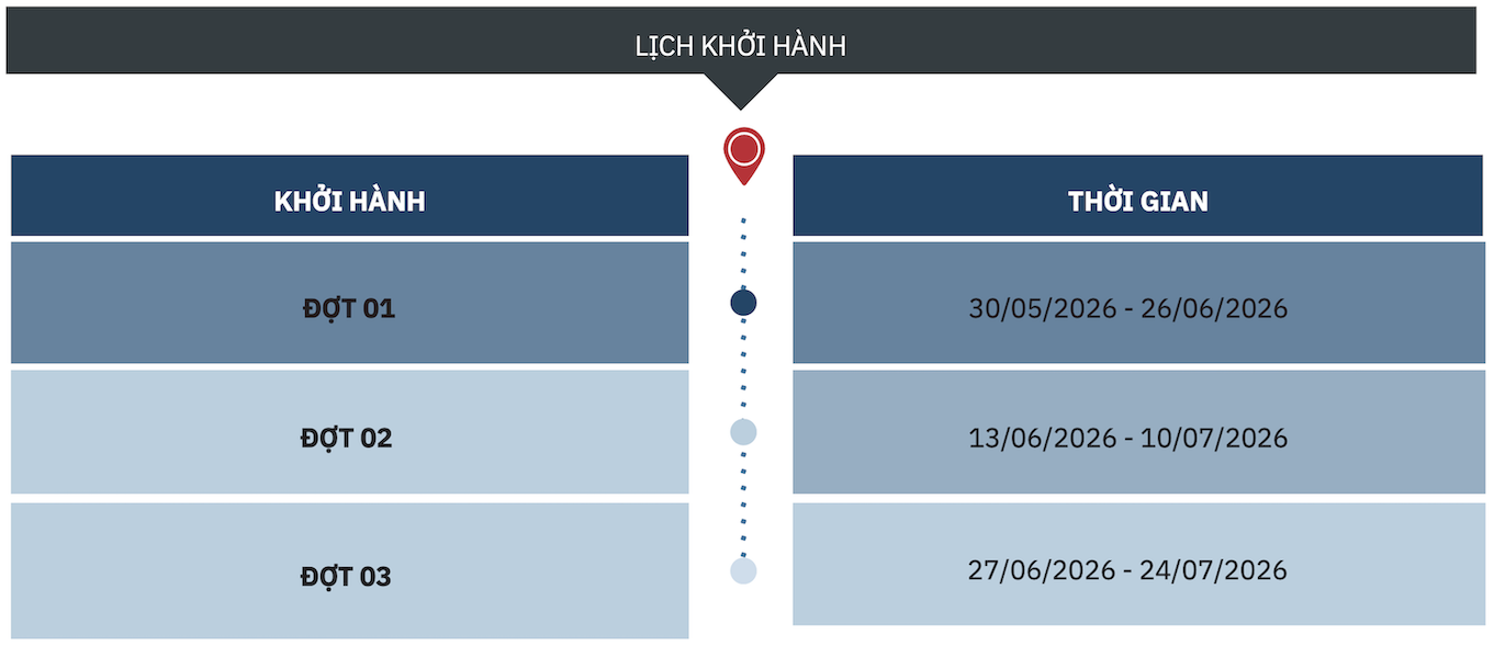 ✔️ Hậu chương trình: bàn giao tại sân bay, nhận chứng nhận hoàn thành và tư vấn lộ trình tiếp theo.