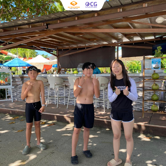 Các bạn học sinh đã có những khoảnh khắc cực kỳ sôi động và thú vị tại khu vực bể bơi của trường. Những trò chơi dưới nước cùng các hoạt động thể thao không chỉ mang đến cảm giác sảng khoái, giải nhiệt mà còn giúp rèn luyện sức khỏe và thắt chặt tinh thần đồng đội. Đặc biệt, các bạn còn có cơ hội tận hưởng không khí trong lành và làn nước mát lạnh tại bãi biển Cebu với ánh nắng vàng rực rỡ, tạo nên một trải nghiệm đáng nhớ không thể bỏ qua!